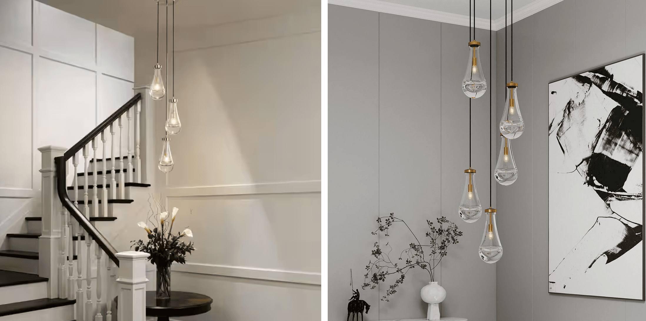Raindrop chandeliers lend themselves to a bold (and dare we say magical!) vibe, and they're available at many price points. These two are both pretty affordable, but the one on the left is still 40% less than the one on the right. Both beautiful statement pieces!