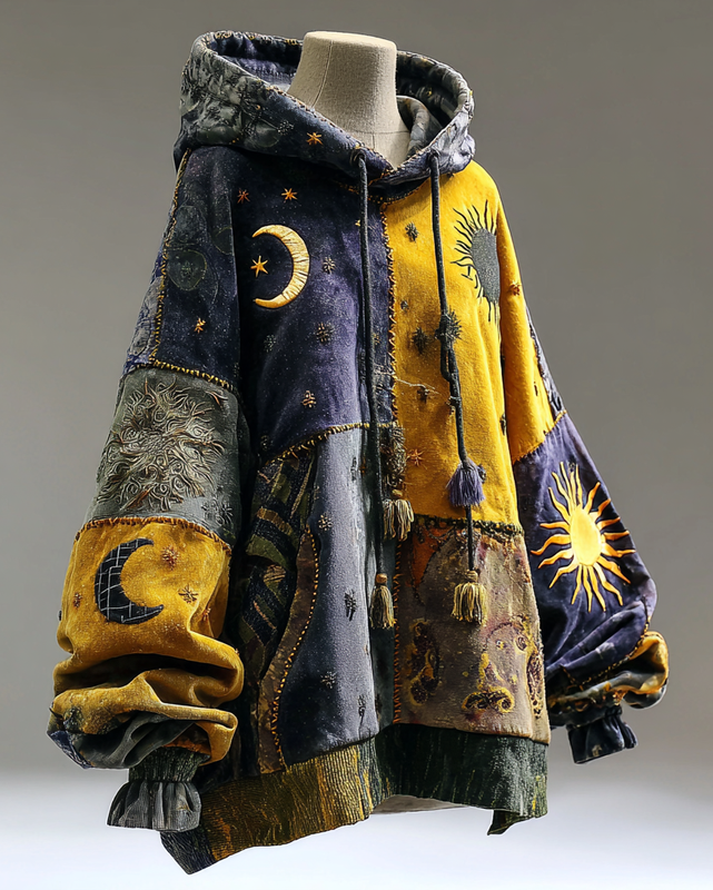 Discover the Women's Star and Moon 3D Celestial Embroidery Hooded Sweatshirt, crafted from 80% li...read more