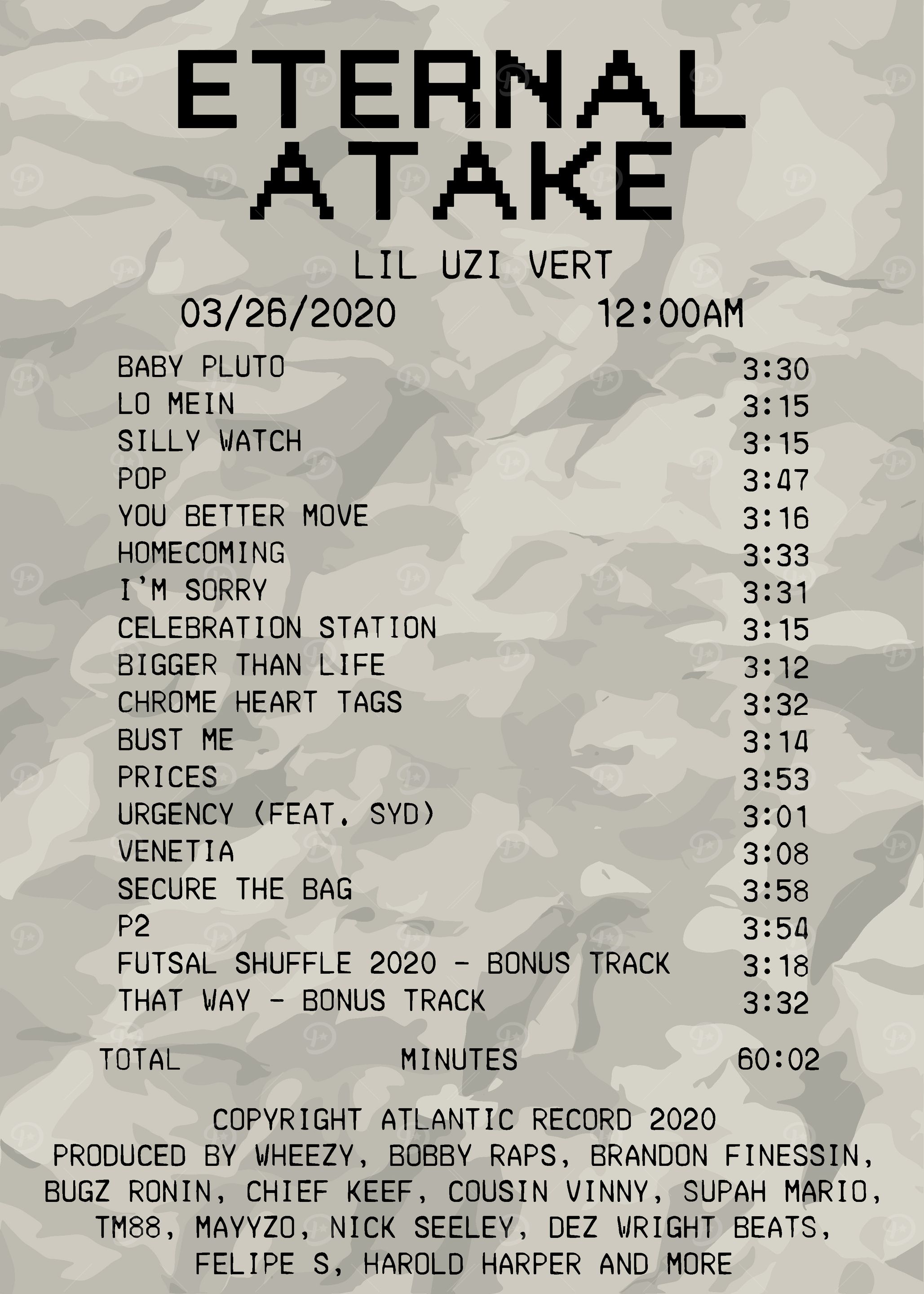 Elevate your space with the Lil Uzi Vert Eternal Atake Tracklist metal poster print by VisionPrin...read more