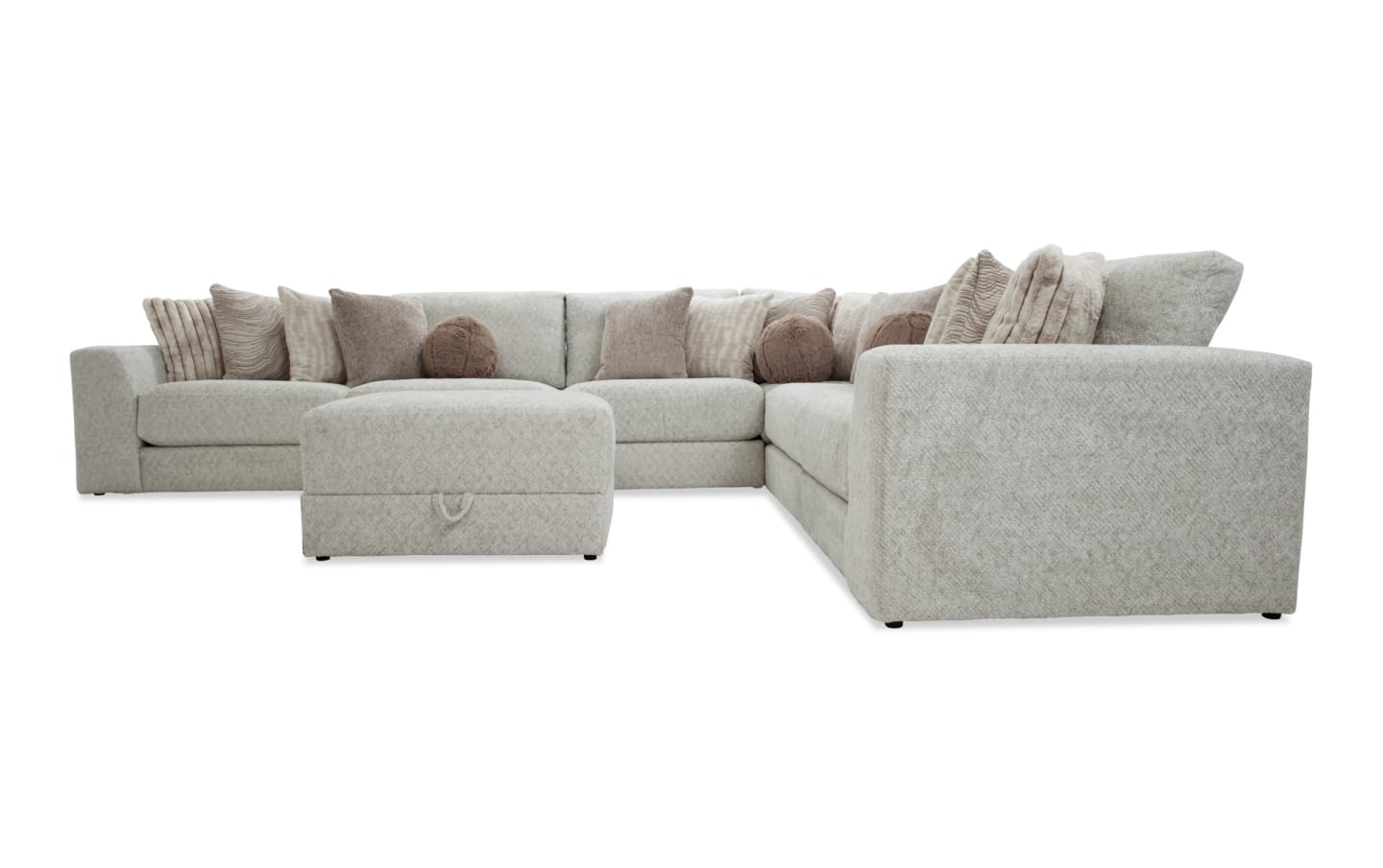 Posh Beige 172'' 7 Piece Modular Sectional with 3 Armless Chairs, 1 Corner, 1 Left Arm Facing Chair, 1 Right Arm Facing Chair, 1 Storage Ottoman | Bob's Discount Furniture & Mattress Store
