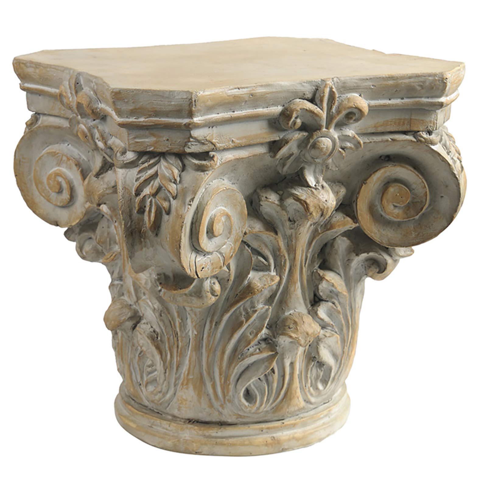 Retro Side Table Roman Pillar For Indoor Outdoor,Corinthian Pillar Pedestal Plant Stand,Antique Handmade Greek Rome Sculpture Resin Nightstand